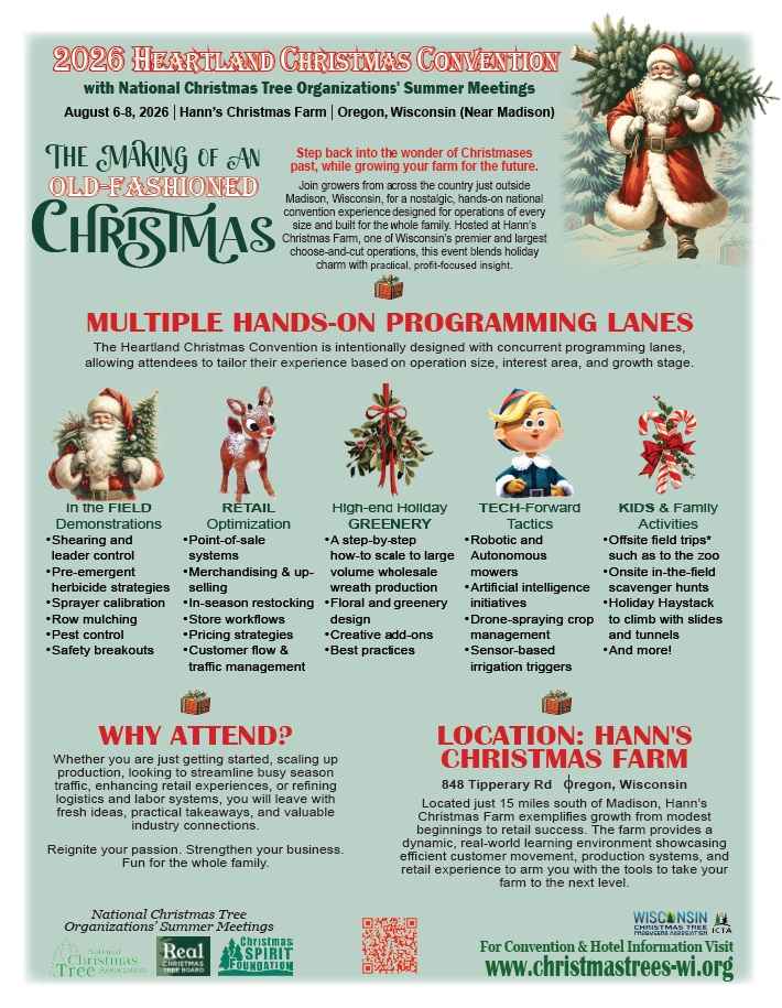 Join nearly 400 Christmas tree growers, retailers, and industry leaders at the Heartland Christmas Convention—a hands-on, working convention hosted at one of Wisconsin’s largest choose-and-cut farms. This is more than a trade show: it’s a high-engagement event where vendors connect directly with decision-makers actively investing in equipment, inputs, retail systems, labor solutions, and services.